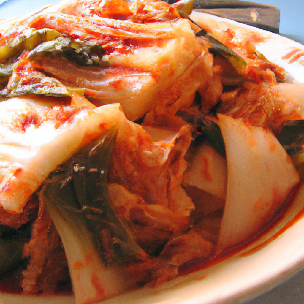 A traditional Korean fermented side dish made with napa cabbage, radish, and a spicy seasoning mixture.